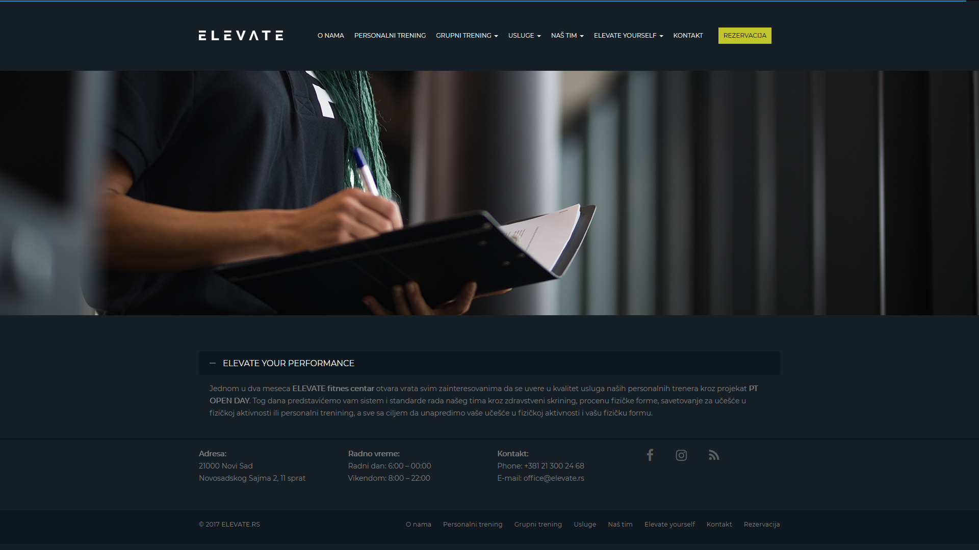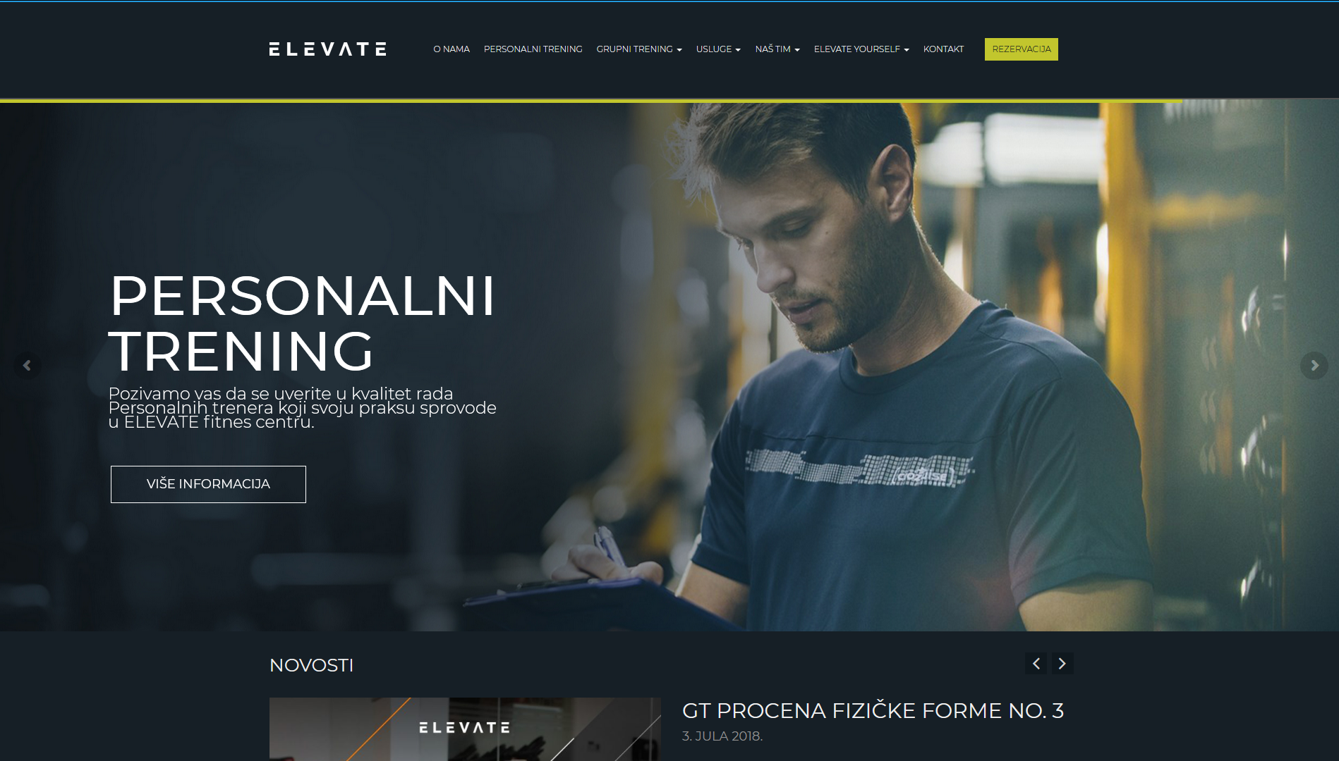 ElevateIgor2020-11-09T08:40:00+01:00 ElevateElevate U ELEVATE fitnes centar će te pronaći pronaći pouzdanog partnera na putu zdravog i ispunjenog života.Izrada sajta Osnovni SEO Online rezervacije