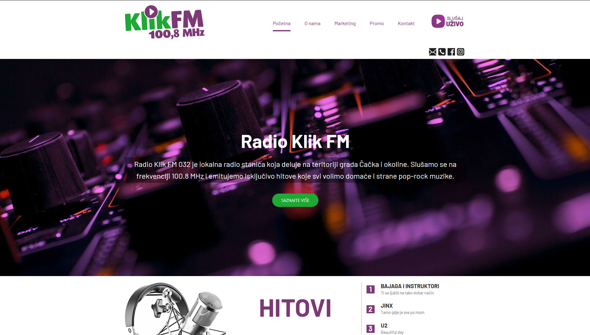 Radio Klik FM 032 je lokalna radio stanica koja deluje na teritoriji grada Čačka i okoline. Slušajte je na frekvenciji 100,8 MHz