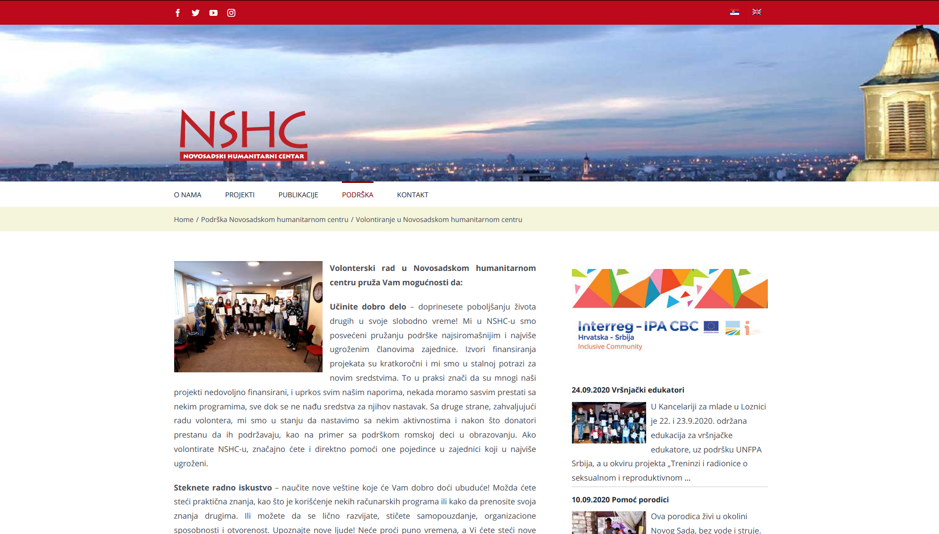 Novosadski humanitarni centarIgor2021-03-19T21:50:10+01:00 Novosadski humanitarni centarNovosadski humanitarni centar Novosadski humanitarni centar (NSHC) je neprofitna i dobrotvorna organizacija koja doprinosi stvaranju humanog društva.Redizajn sajta Osnovni SEO Dvojezičan sajt nshc.org.rs